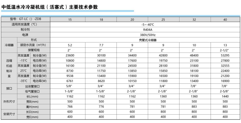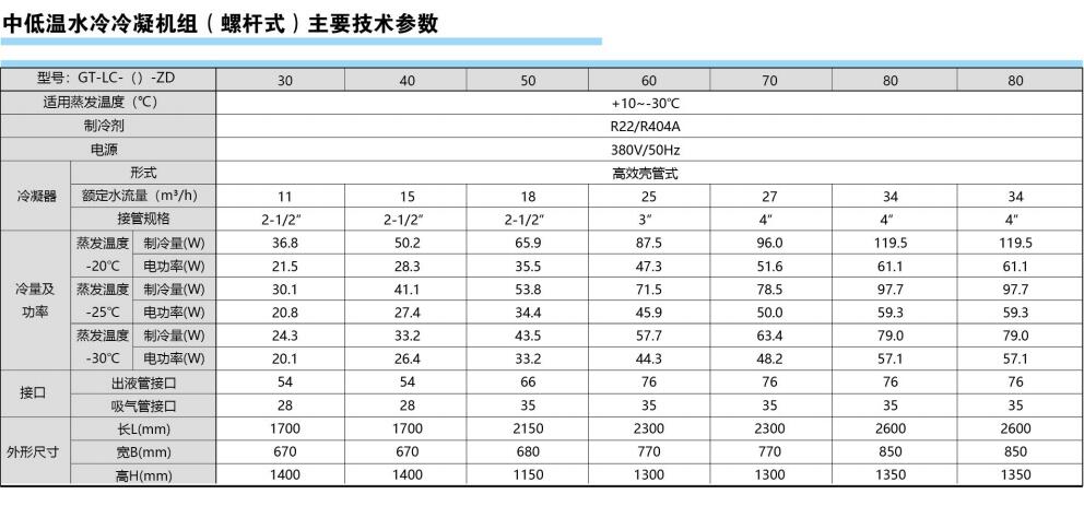 3) 水冷机组采用先进的高热流冷凝管、耐压无缝钢管、端板、端盖等组成的高效壳管冷凝器,质量可靠、性能优良